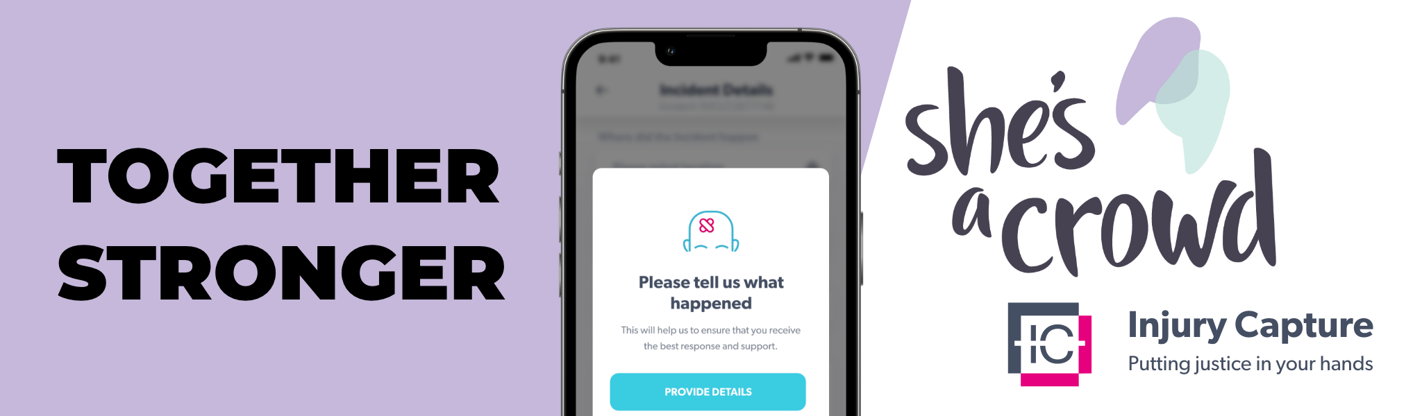 She’s A Crowd is the first international organisation that Injury Capture has partnered with, and Simon hopes it will be the beginning of many more, so that victims of violent crime all over the world can access the help and support available to them.